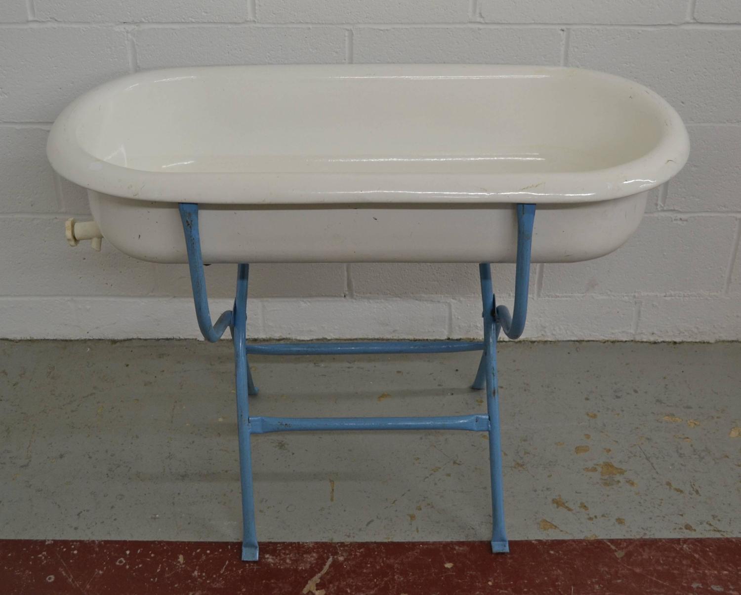 Antique authentic porcelain enamel baby bath garden planter w stand 1930s europe this unique baby bathtub with stand comes from around 1930.